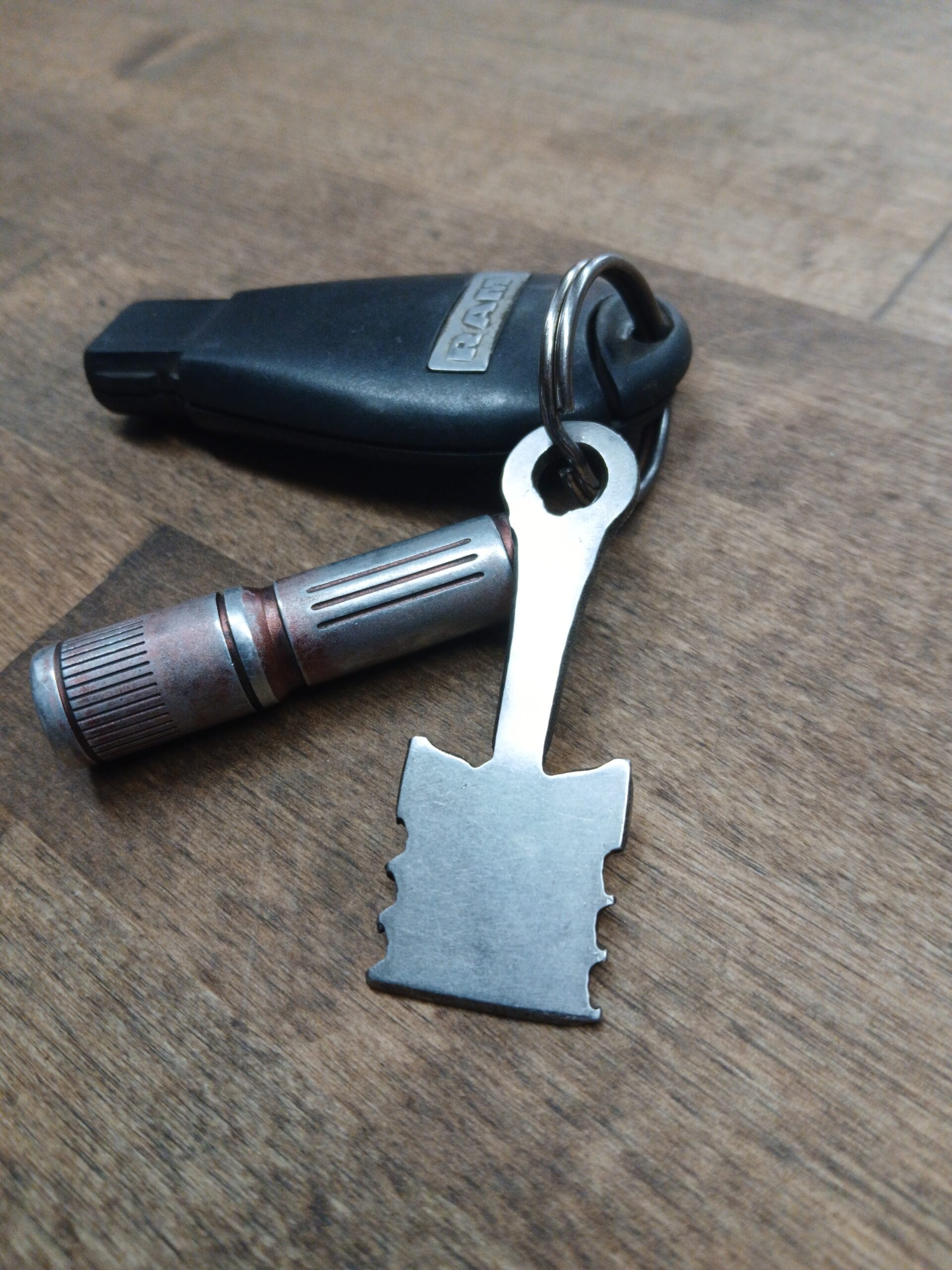 A tiny piston that’s tougher than your Monday morning coffee. Made from 14 gauge stainless steel with a stone wash finish. This keychain keeps going- just like you when 3 a.m. hits and your car has more parts on the floor than under the hood.