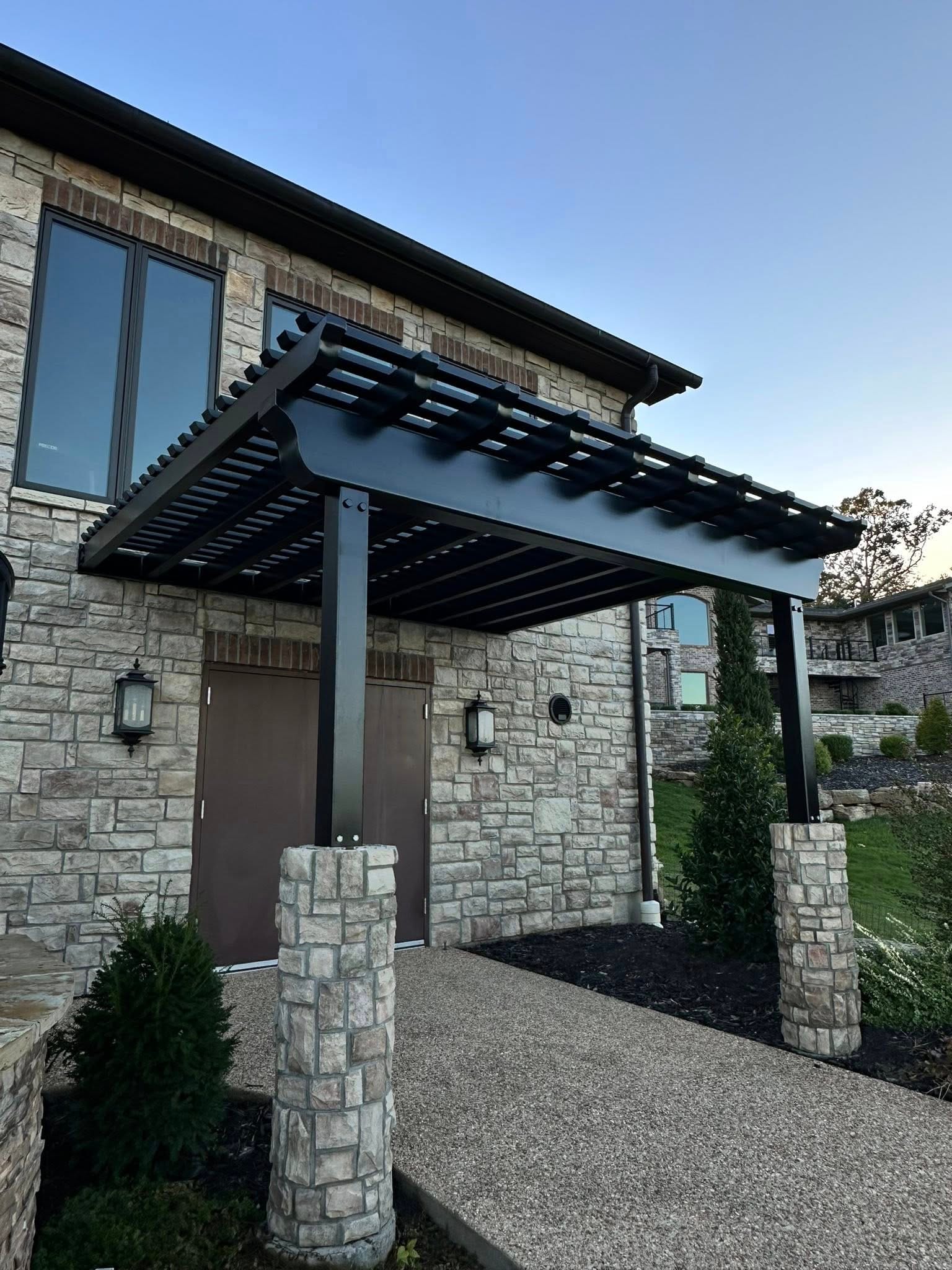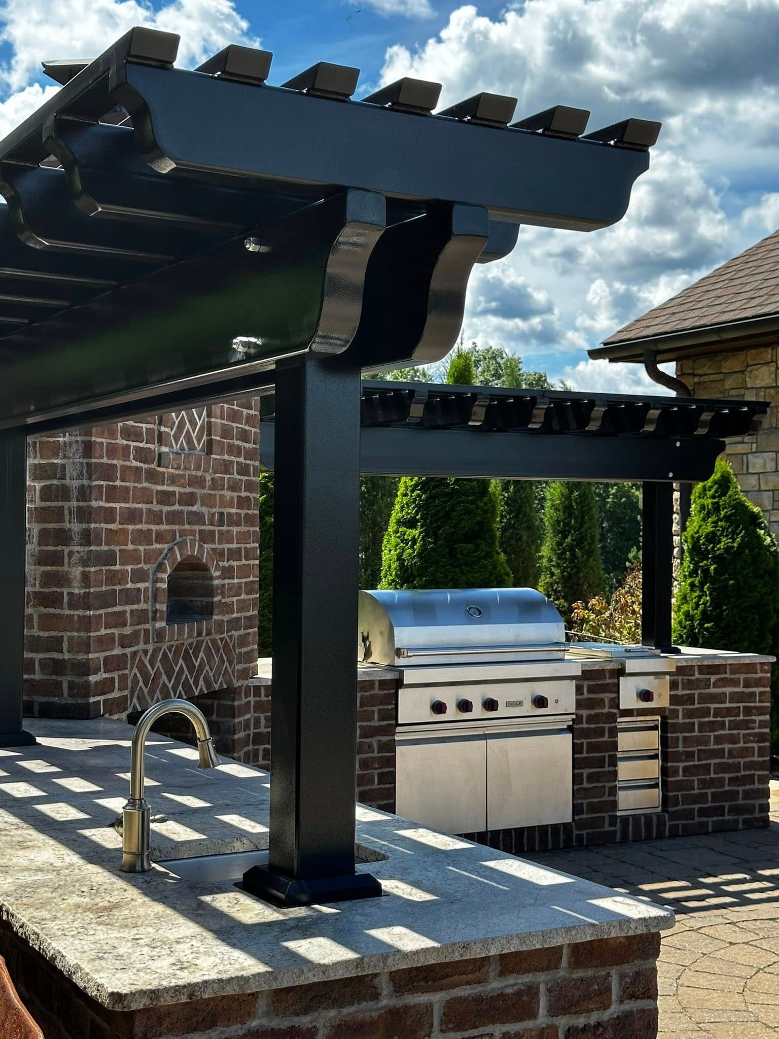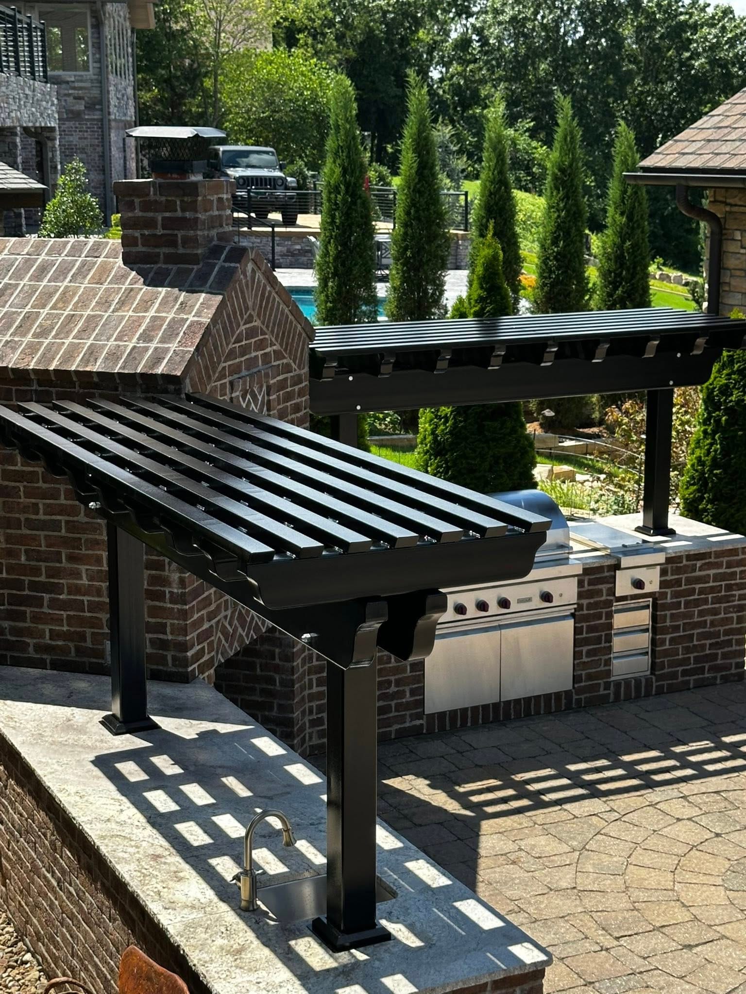With subtly curved ends and a sleek textured black powder coat, these pergolas are the perfect finishing touch to this customer’s outdoor space. Built for longevity, they’re designed to stand the test of time while the structural expressionist design proves that steel can be both beautiful and functional.
